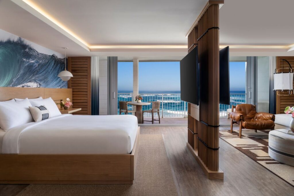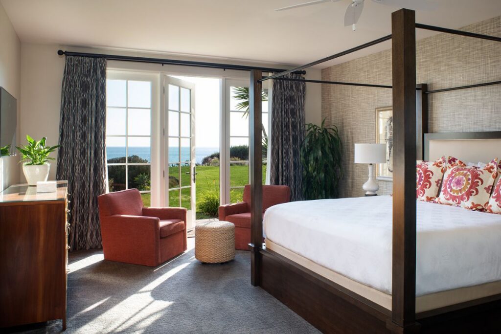 Perched atop a cliff overlooking the Pacific Ocean, Southern California’s Terranea Resort is all about variety. There are luxe accommodations for couples and families alike, including bungalows right near the ocean’s edge. You can enjoy a glass of wine while you watch the sun set from your bungalow patio (with a fire pit) or balcony (with an outdoor fireplace). Inside, the bungalows feature one or two bedrooms with king or queen beds outfitted in sumptuous linens.